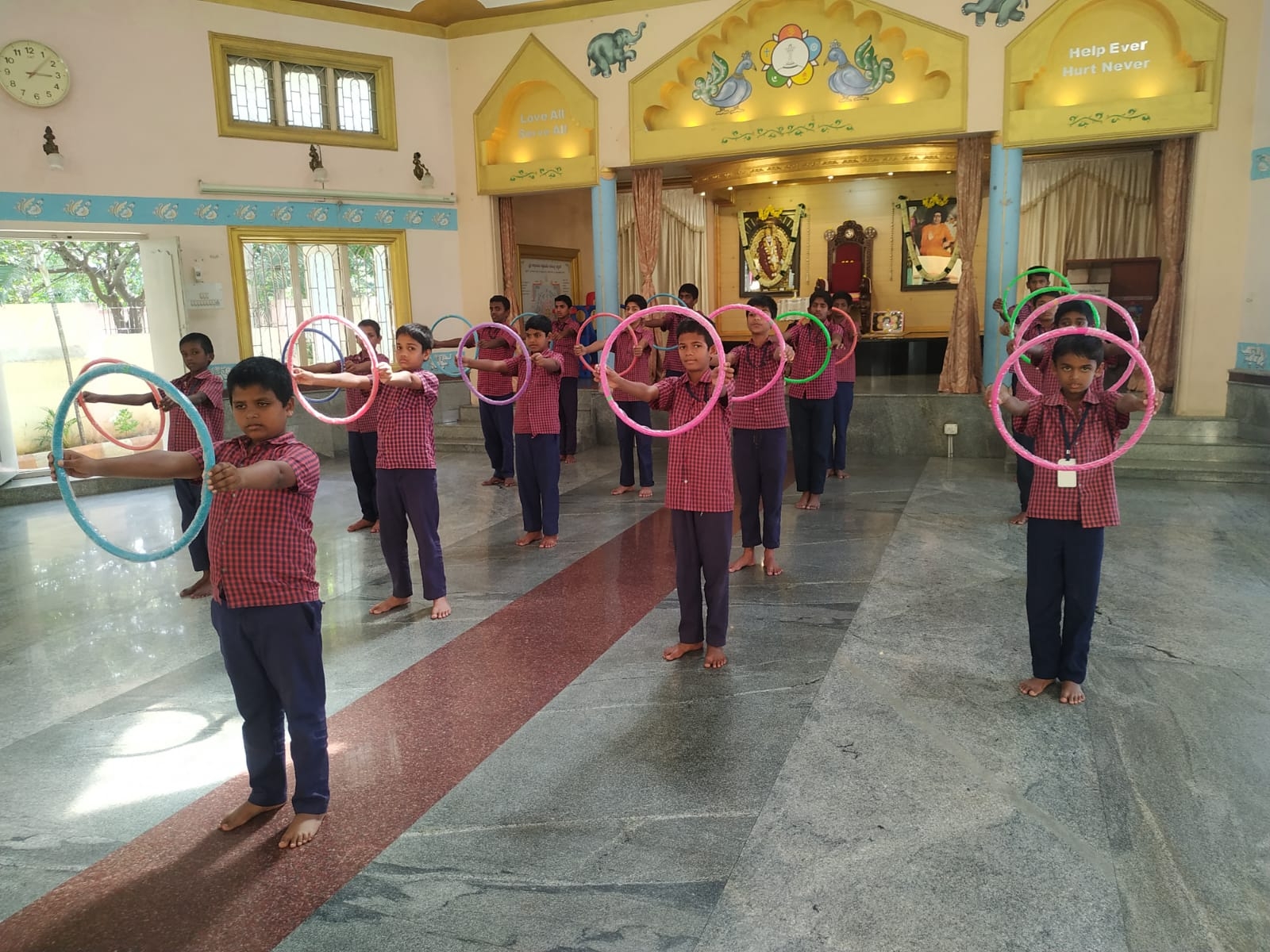 The hostel mess caters to all the food and nutritional requirements of the students. The kitchen is well maintained to ensure high standards of hygiene. Spacious Prayer Hall “ Sai Vaibhava Kendra “ Exists between the school building and Hostel.